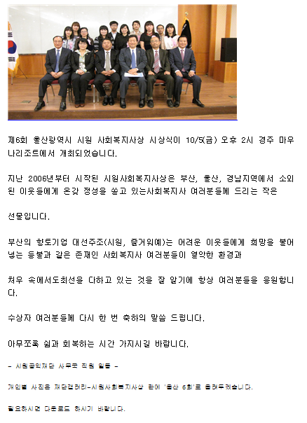 제목 제6회 울산광역시 시원 사회복지사상 시상식