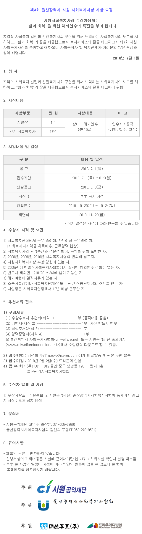 제4회 울산광역시 시원 사회복지사상 시상 요강
