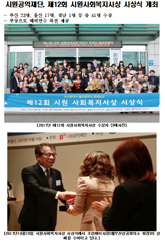 2017년『제11회 울산 시원사회복지사상』수상자 발표