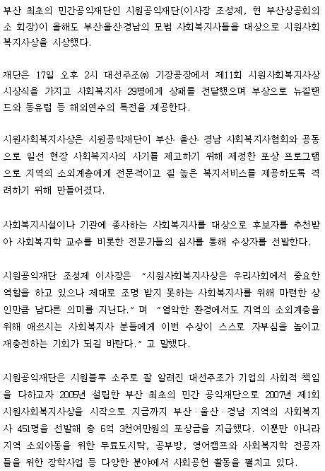 2016년『제11회 부산 시원사회복지사상』수상자 발표
