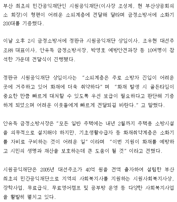 금정소방서에 ‘사랑의 소화기’ 기증