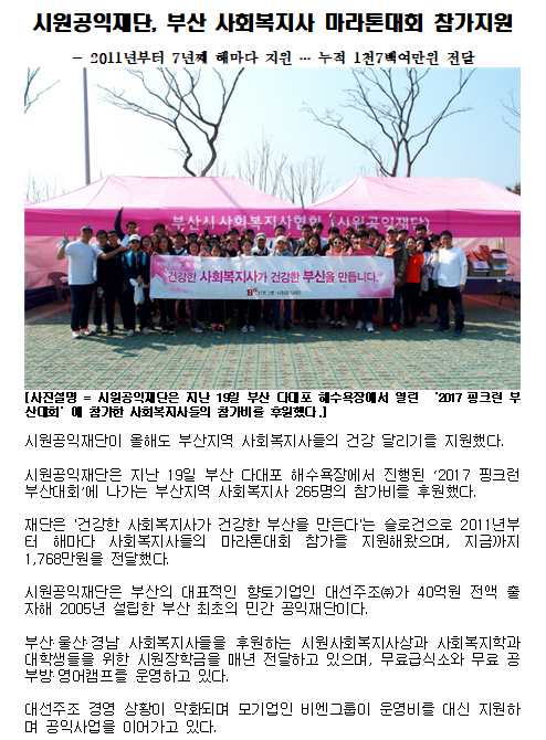 시원공익재단, 부산 사회복지사 마라톤대회 참가비 후원