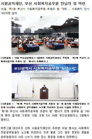 시원공익재단, 부산 사회복지공무원 만남의 장 마련