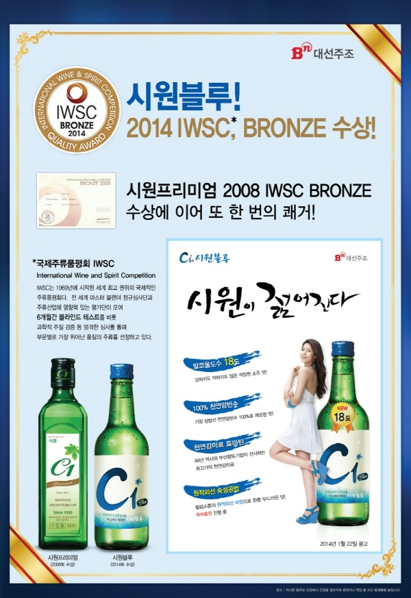 '시원블루' 국제주류품평회 동상 수상 | ||||