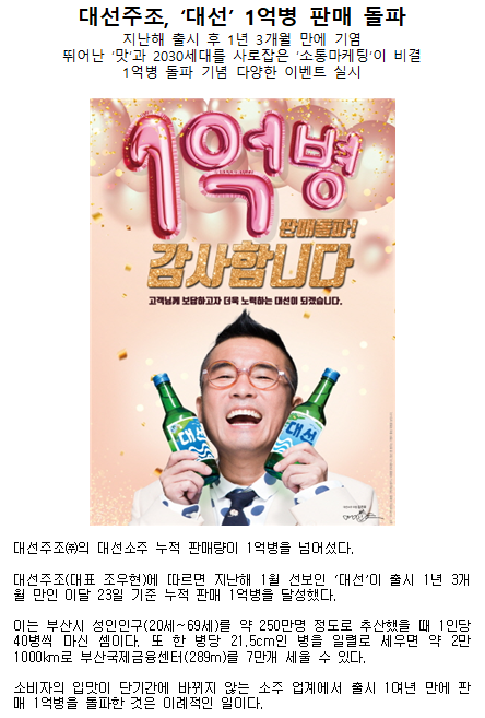 대선주조, 시민과 함께하는 ‘대선’ 공모전 성료