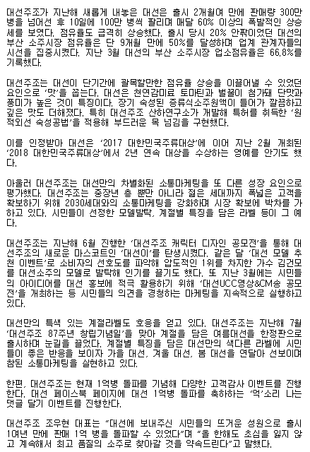 대선주조, ‘제1회 대선 UCC영상&CM송 공모전’ 수상작 발표