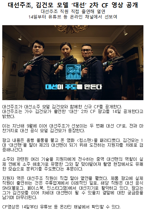 대선주조, 김건모 모델 ‘대선’ 2차 CF 영상 공개