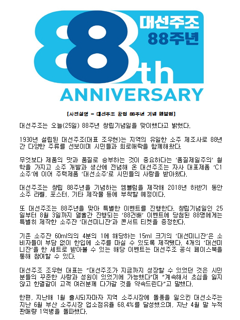 대선주조, 창립 88주년 기념 김건모 콘서트 개최