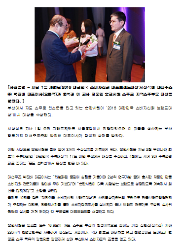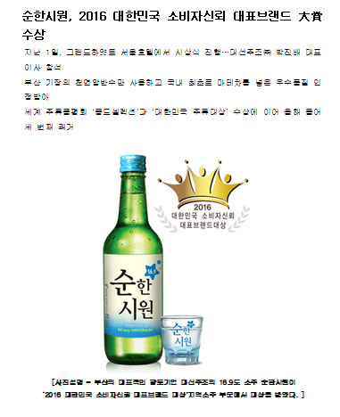 순한시원, 2016 대한민국 소비자신뢰 대표브랜드 大賞 수상