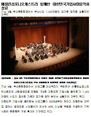 비엔그룹의 베를린심포니오케스트라와 함께한 기업사랑음악회 성료