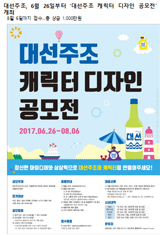 대선주조, ‘대선주조 캐릭터 디자인 공모전’ 개최