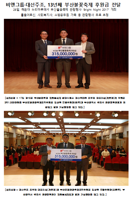비엔그룹·대선주조, 13년째 부산불꽃축제 후원금 전달