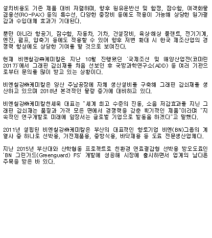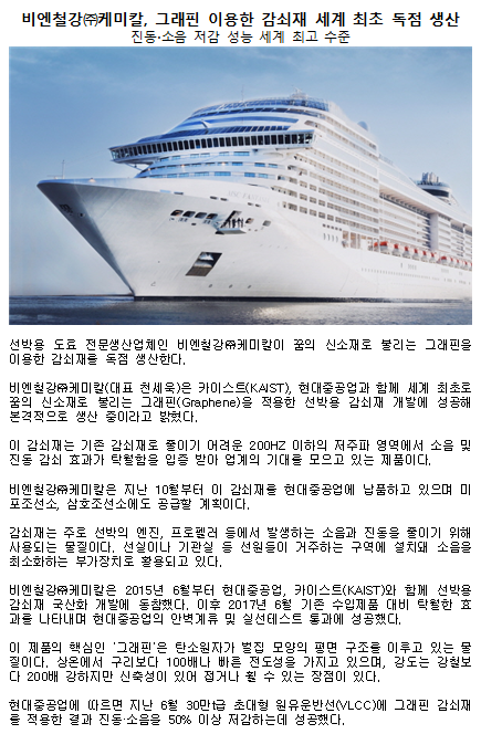 비엔철강㈜케미칼, 그래핀 이용한 감쇠재 세계 최초 독점 생산