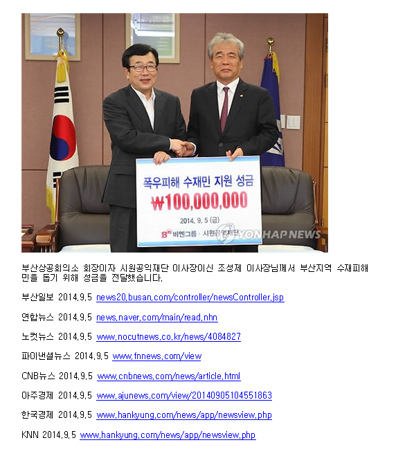 조성제 부산상공회의소 회장, 수해성금 1억원 전달