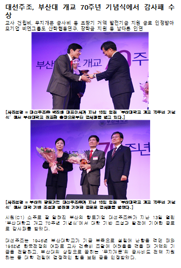 제목 대선주조, 부산대 개교 70주년 기념식에서 감사패 수상