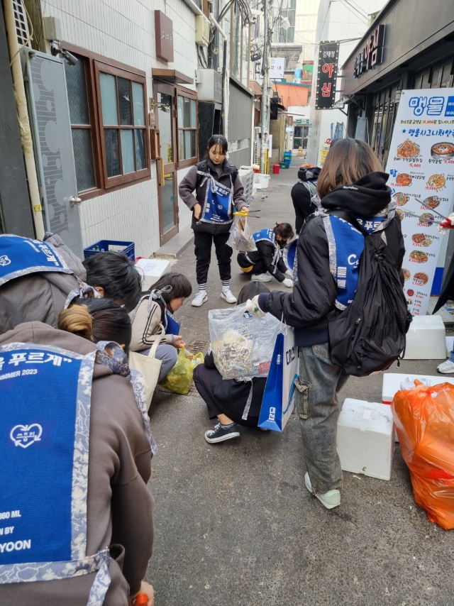 6일 지역사회에 따르면 대선주조는 4일 오후 환경단체 쓰레기를 줍는 사람들’(쓰줍인)과 함께 부산의 중심 상권인 서면 일대에서 담배꽁초를 중심으로 쓰레기 수거에 나섰다. 쓰줍인은 MZ세대가 주축이 돼 결성된 모임으로 회원 수가 3600여 명에 달하고 30개 환경·사회단체가 연대해 전국에서 환경 정화 활동을 벌이고 있다.