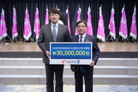 행사에는 대선주조 최홍성 전략기획실장이 참석해 한국외식업중앙회 강인중 부산광역시지회장에게 장학금 3천만 원을 전달하며 지역 상생과 동반성장을 위한 협력을 당부했다. 대선주조는 2017년부터 올해까지 총 32860만 원을 후원하며 534명의 지역 외식업종사자 자녀들이 꿈을 키워나갈 수 있도록 돕고 있다.