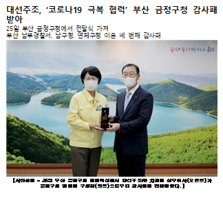 대선주조, ‘코로나19 극복 협력’ 부산 금정구청 감사패 받아