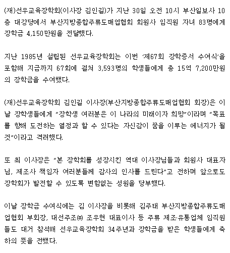 (재)선우교육장학회 ‘제67회 장학증서 및 장학금 수여식’