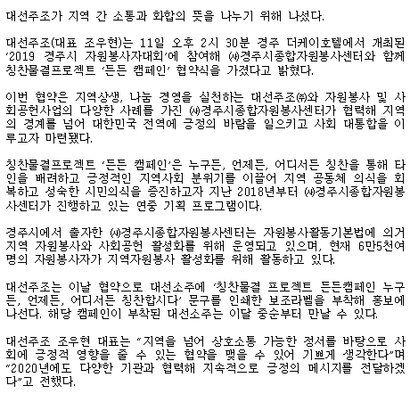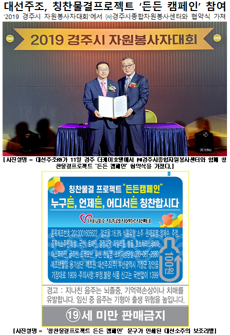 제목 대선주조, 칭찬물결프로젝트 ‘든든 캠페인’ 참여