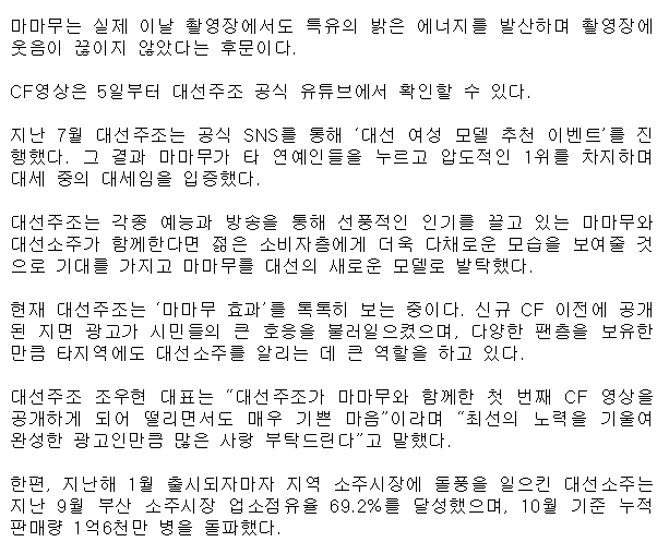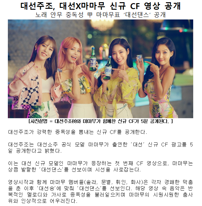 대선주조, 대선X마마무 신규 CF 영상 공개